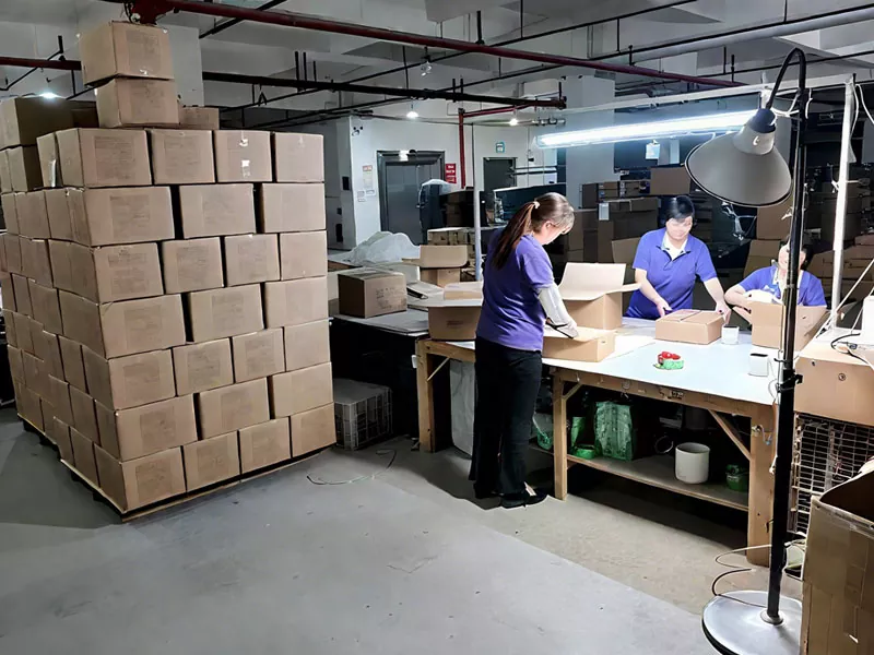 پیکیجنگ اور شپنگ کی سہولت کے ل we ، ہم نے ڈونگ گوان میں اپنے ہیڈ کوارٹر کے قریب اپنا پیکیجنگ سینٹر قائم کیا ہے۔ یہ مرکز شیشے کی موم بتیوں اور پھیلاؤ والے جیسے نازک اشیاء کے لئے پیکیجنگ حل میں مہارت رکھتا ہے۔ ہم کسٹم بکس اور استر تشکیل دے سکتے ہیں ، اور ہم ماحولیاتی دوستانہ مواد کو شیشے کے پھیلاؤ اور آرائشی سیرامکس جیسی اشیاء کی حفاظت کے لئے استعمال کرسکتے ہیں ، جس سے نقل و حمل کے دوران ان کی حفاظت کو یقینی بنایا جاسکے۔